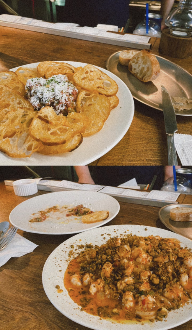 吃過一次後發現原來有這麼美味的食物,生拌牛肉搭配剛烤好的麵包