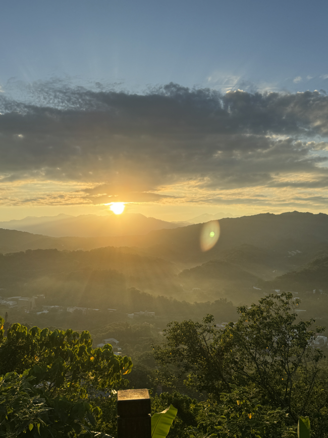 一步步照著手電筒往上走, 到達頂端時候等著太陽升起