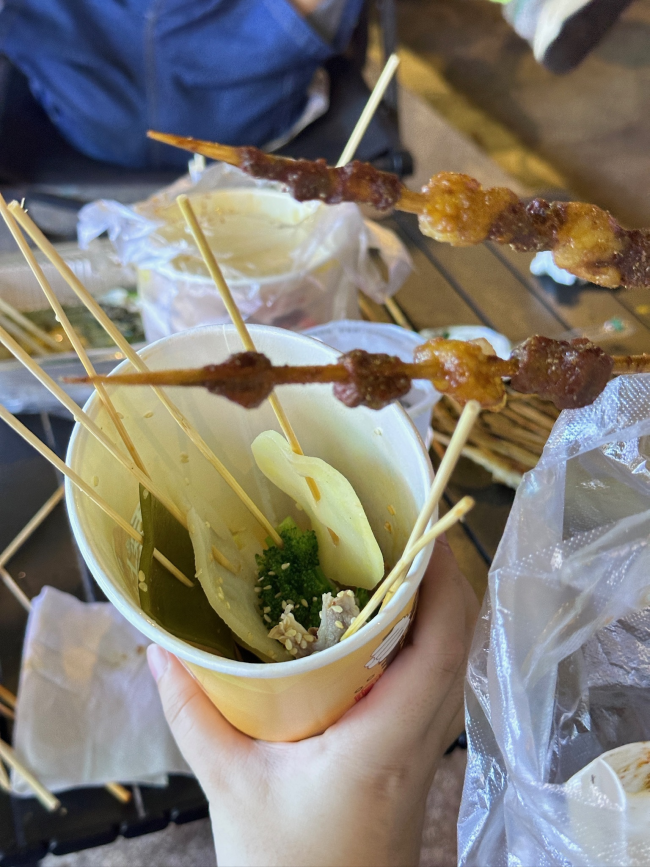 這是大陸的美食:缽缽雞和羊肉烤串 缽缽雞是用紅油、花椒與中藥香料涼拌而成,吃起來香辣帶麻、口感鮮明 大陸的微辣跟台灣的小辣很不同,吃起來刺激又過癮!有機會來一定要嘗試看看❤️ 街邊也有很多位子 不怕沒位子坐 可以好好坐下來休息~ Likes 33