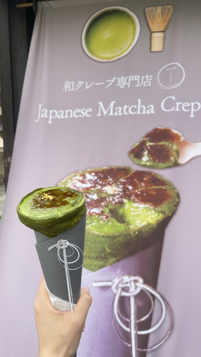 抹茶控的天堂🍵 非常正統濃濃的抹茶 在前往銀閣寺巷弄中的和風可麗餅專門店,終於吃到這款傳說中的抹茶布蕾可麗餅!上層焦糖烤得剛剛好,抹茶香濃卻不苦,內餡滑順,還有小餅乾在裡面,連包裝都超有質感。甜點的儀式感,完美♡ Likes 29